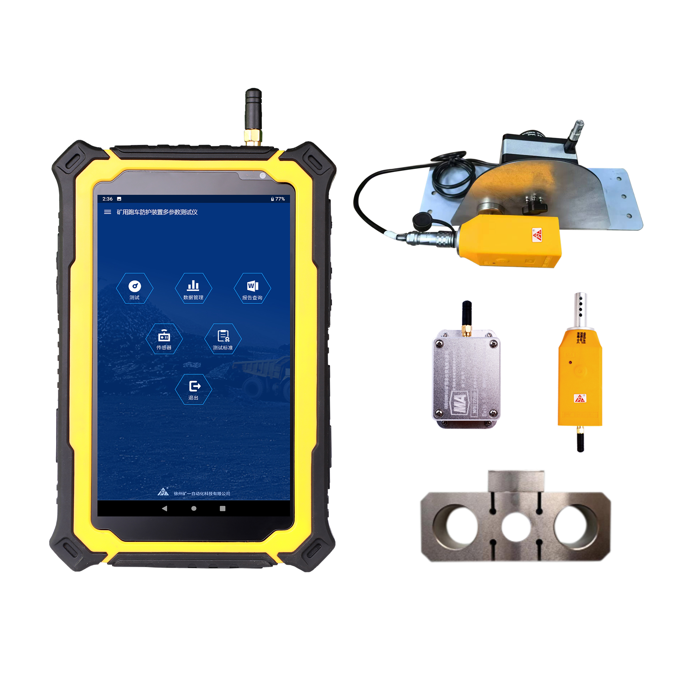 仪器用于矿用跑车防护装置的性能检测,可测试最大收放力、提升速度、斜坡轨道角度、距离、环境参数、车辆质量、噪声,可以计算抗冲击能量试验的斜坡长度等。